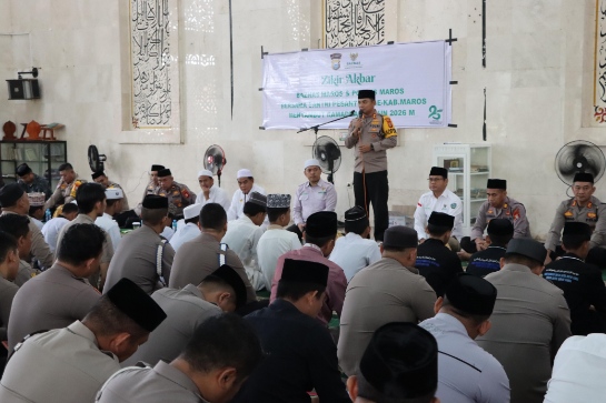 Marosatu.com, Maros – Dalam rangka menyambut datangnya Bulan Suci Ramadhan 1447 H/2026 M, Polres Maros bersama Badan Amil Zakat Nasional (Baznas) Kabupaten Maros menggelar kegiatan Zikir Akbar yang melibatkan perwakilan santri dari 25 pondok pesantren se-Kabupaten Maros. Kegiatan tersebut dilaksanakan di Masjid Agung Maros, Kamis (12/2/2026).
